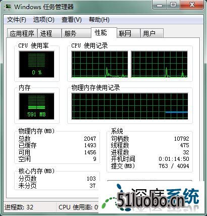 1、启动"windows任务管理器",快捷键"alt+ctrl+delete"点击"性能"选项卡,查看系统内存和物理内存的使用情况;