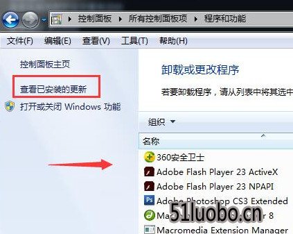 3、进入安全模式后,依次点击“开始-控制面板-查看已安装的更新”,找到KB2859537补丁,将其卸载掉。
