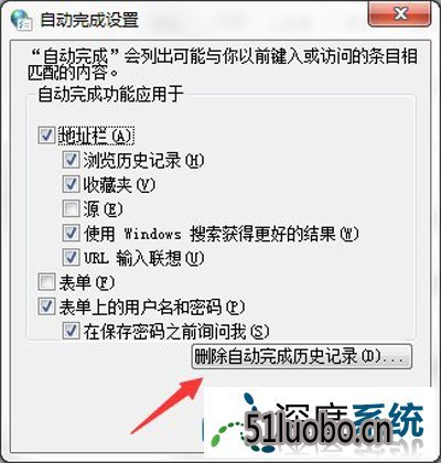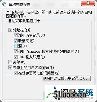 6、点击“删除自动完成历史记录”,可以消除在任意搜索栏中曾经搜索过的记录;