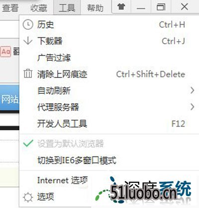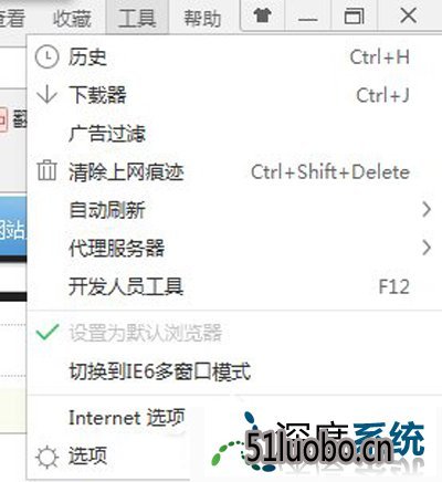 1、以360浏览器为例,萝卜家园,点击右上角的工具;
