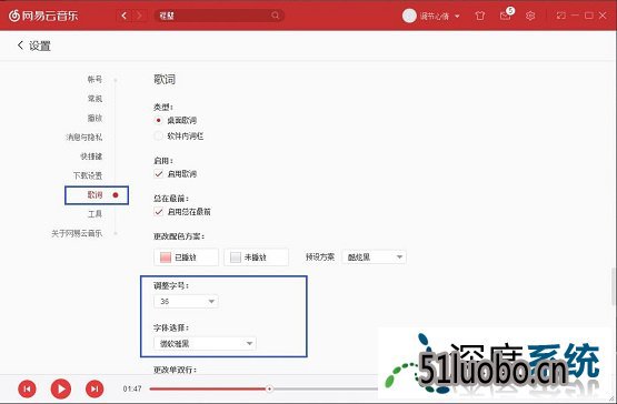 通过上述几个步骤的简单操作,我们就能在win10系统下成功更改网易云音乐歌词大小了。方法并不复杂,萝卜家园,相信大家只要操作一遍就能马上学会!