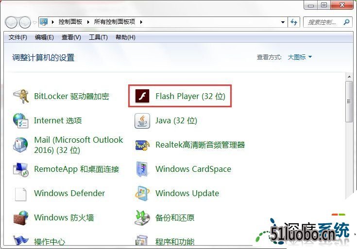 1、从电脑的“控制面板”中找到“flash player”并点进去;
