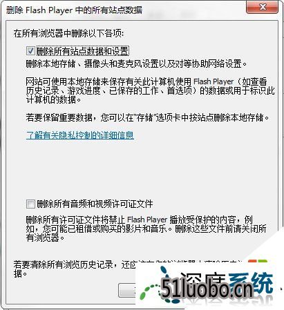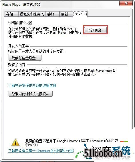 2、在Flash player 设置管理器中,选择“高级”下的“全部删除”;