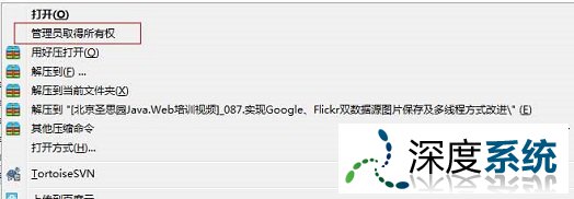 ? ? 3、现在你想进入的文件或文件夹上右键,就会发现出现一个管理员取得所有权 ;
