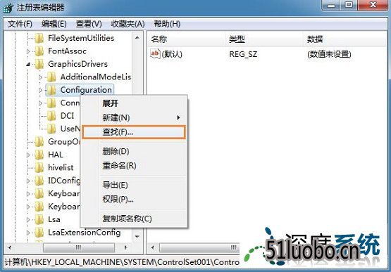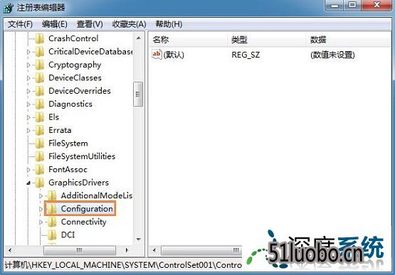 2、依次找到到HKEY_LoCAL_MACHinE→sYsTEM→Controlset001→Control→Graphicsdrivers→Configuration;