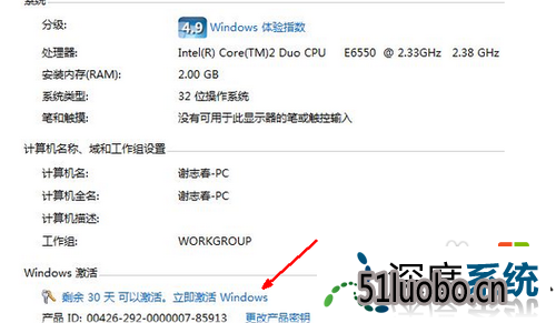 3、如图所示,系统的激活信息在最下方的windows激活这个信息下面,如果没有激活,会有一个提示说剩余多少天可以激活,点击立即激活windows这个蓝色的链接。