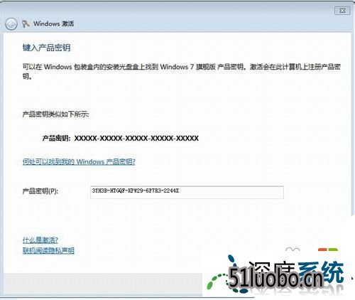 4、然后开始输入系统的激活密钥,这下面的空白框里面输入你的系统密钥,要注意一定要输入正确,中间的横线不用键入,会自动加上。输入完成,点击下一步。