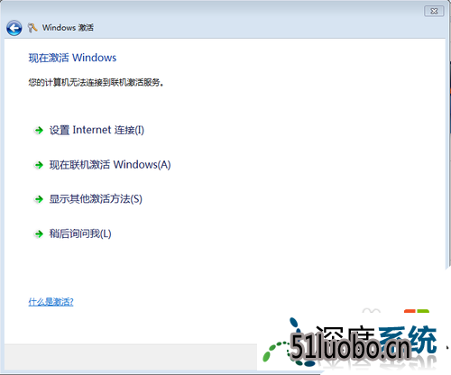 5、现在开始联机激活系统了,只需要点击第二个选项,即现在联机激活windows,前提是你的电脑里已经有了网络连接,并且网络连接状况良好 ,否则只能采取其他的方式来激活。