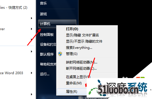 2、打开开始菜单,右键点击计算机选项,然后在弹出的右键菜单中选择属性,打开属性页面,可以查看系统的激活信息。